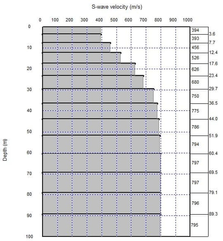 Perfil de velocidad de ondas de corte (Vs).